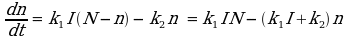 The main features of the RBI behaviour can be explained with a simple model as follows. Suppose that the rate at which the traps are charged is proportional to the number of unfilled traps (i.e. when all traps are empty, any photo-electron in the substrate finds a trap and so they initially fill quickly; when most are full, the chances are that an electron won't encounter an unfilled trap so the rate of charging is slower). Further suppose that the rate of decrease of the number of filled traps is proportional to the number of traps that are currently filled (i.e. assume that the traps decay at random; the more traps that are filled, the more decays there will be in any given time). Here for the sake of simplicity we are assuming just one decay time-constant, although the analysis above shows there to be at least two.